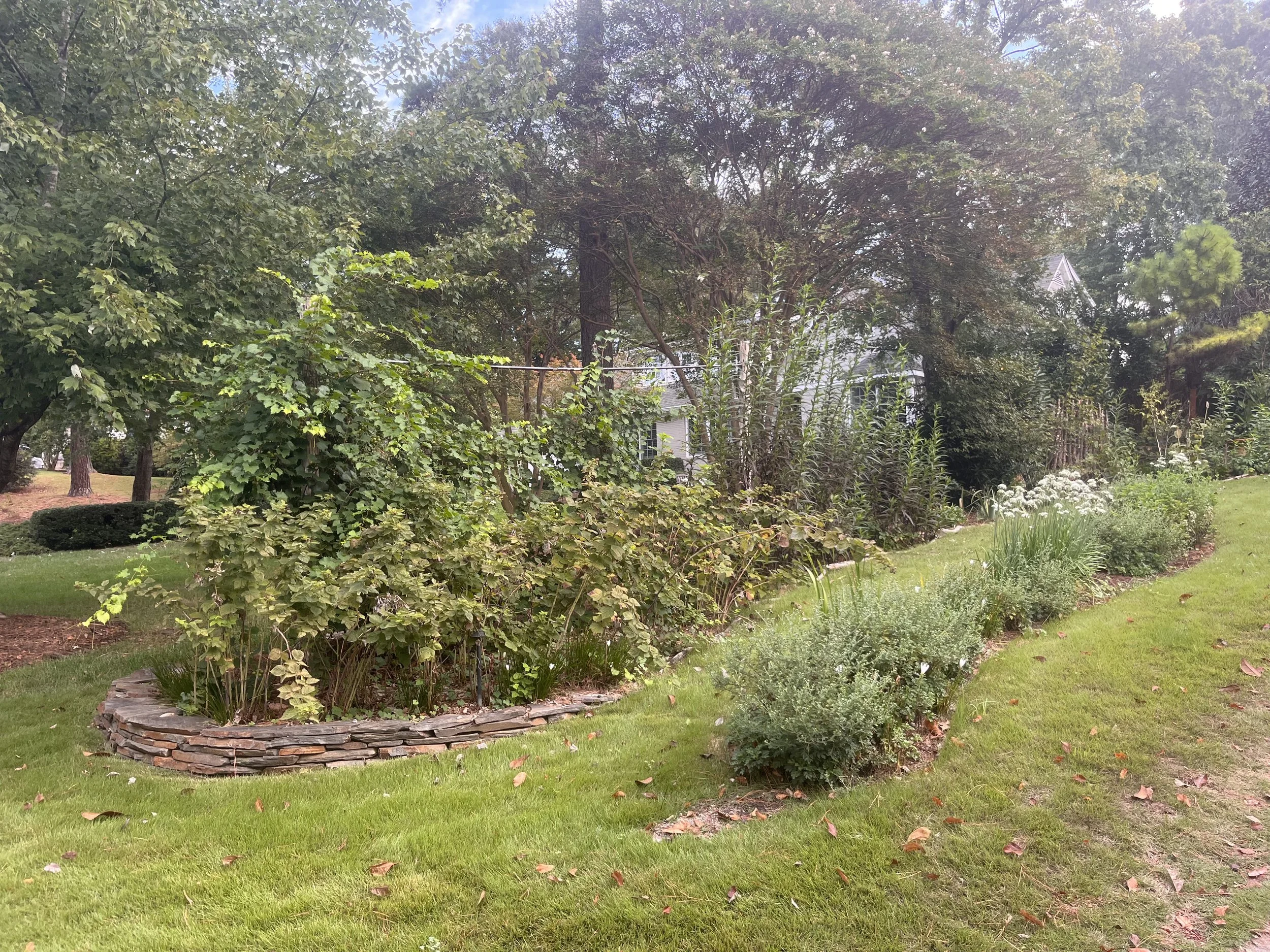 This was a first for me. All during September, I wasn’t home for a weekend, not once. As one can imagine, I was very much behind. During October, I plan to “clean. up.” I lost a few boxwoods in my Oasis Zones. That was predictable. Most all survived in the Transitional Zones. And I did lose a few hybrid azaleas in the Xeric Zones. I’m surprised at that, given they were planted 18 months ago. They will not be replaced. If you want to live in the Xeric Zones, you have to be independent of me. That’s the whole point!!!