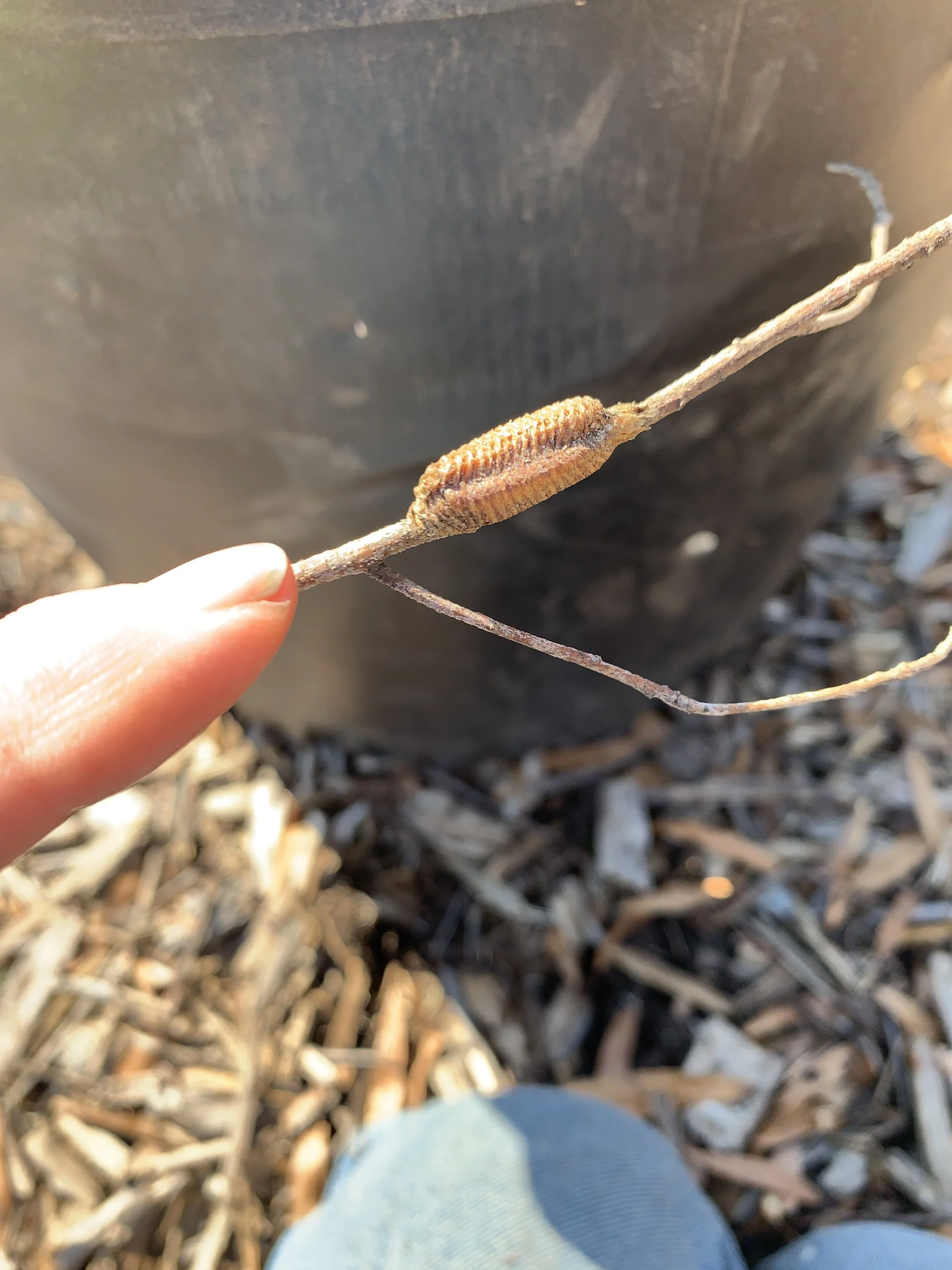 Native praying mantis chrysalis. Carolina mantis, Stagmomantis carolina